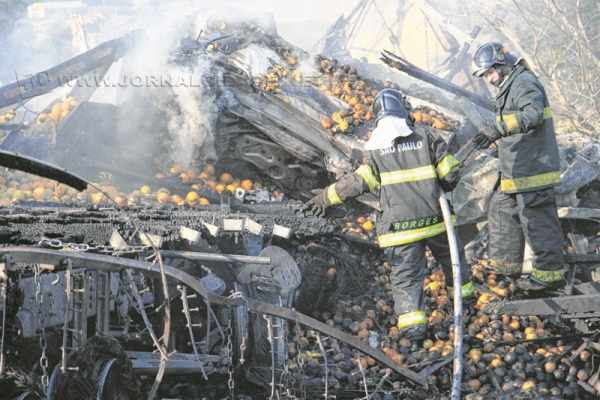 O caminhão de laranjas tombou no acostamento da pista e pegou fogo depois da colisão. Grande parte de sua carga ficou no acostamento. “Recebi a ligação durante a noite informando que o motorista do caminhão de laranjas trabalhava para uma transportadora do Rio de Janeiro”, acrescentou.