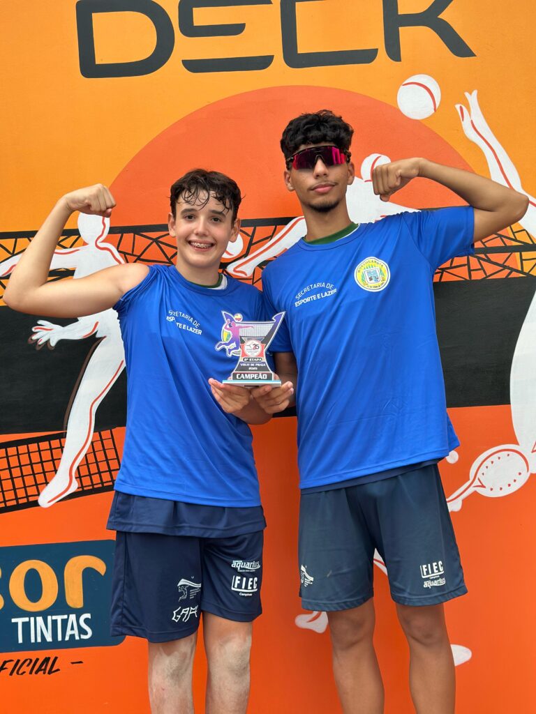 Guilherme Bossolani (esquerda) e Miguel Ricco representaram Hortolândia na categoria até 15 anos, em torneio disputado em Araraquara