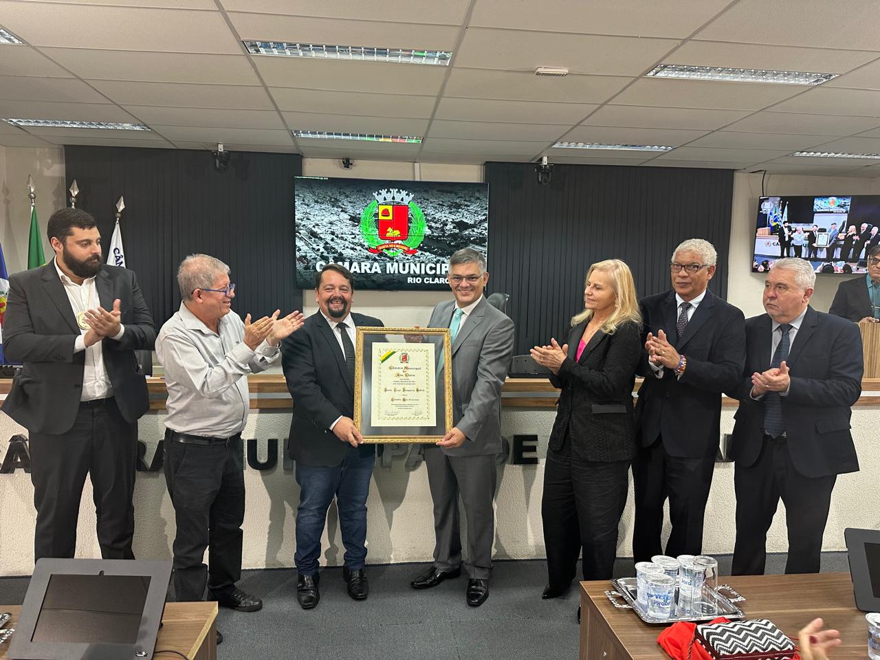 “Ser declarado por lei cidadão rio-clarense, através de ato dos vereadores, legítimos representantes da população de nosso município, faz jus ao sentimento que tive desde o primeiro momento quando aqui cheguei para comandar a Polícia Civil na sub-região de Rio Claro. Minhas preocupações cotidianas passaram a ser com o bem estar de sua população. Esta homenagem é o reconhecimento do trabalho de toda a Polícia Civil no combate à criminalidade e na promoção da segurança, feito por pessoas que no dia a dia dividem comigo a honra e a missão de restabelecer a paz em nossa cidade”, disse o titular da Seccional ao Jornal Cidade. O Decreto Legislativo foi de autoria do vereador Hernani Leonhardt (MDB) e teve a aprovação dos demais parlamentares.