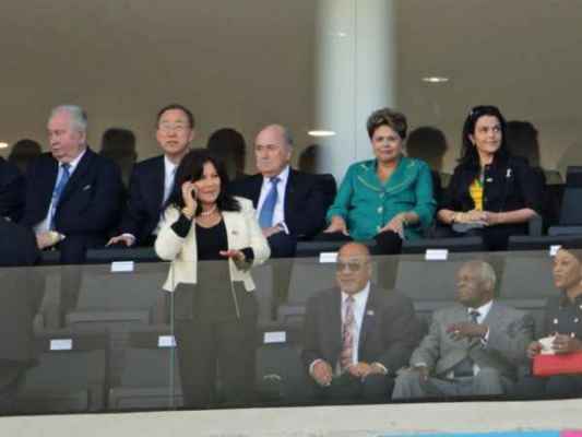 Mesmo sem fazer pronunciamento, a presidente Dilma Rousseff foi xingada durante a cerimônia de abertura da Copa do Mundo, na Arena Corinthians. O esforço para esconder a presidente do público, não deu resultado. Poucos minutos depois de Dilma chegar ao estádio para a festa, ela foi recebida com um coro que gritava, “Ei, Dilma, vai tomar no c…”.