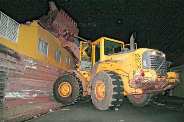 No final da tarde de quarta-feira (1º), teve início o processo de demolição do prédio histórico do Hotel Stein, localizado na esquina da Rua 4 com a Avenida 8, bem no centro do município.