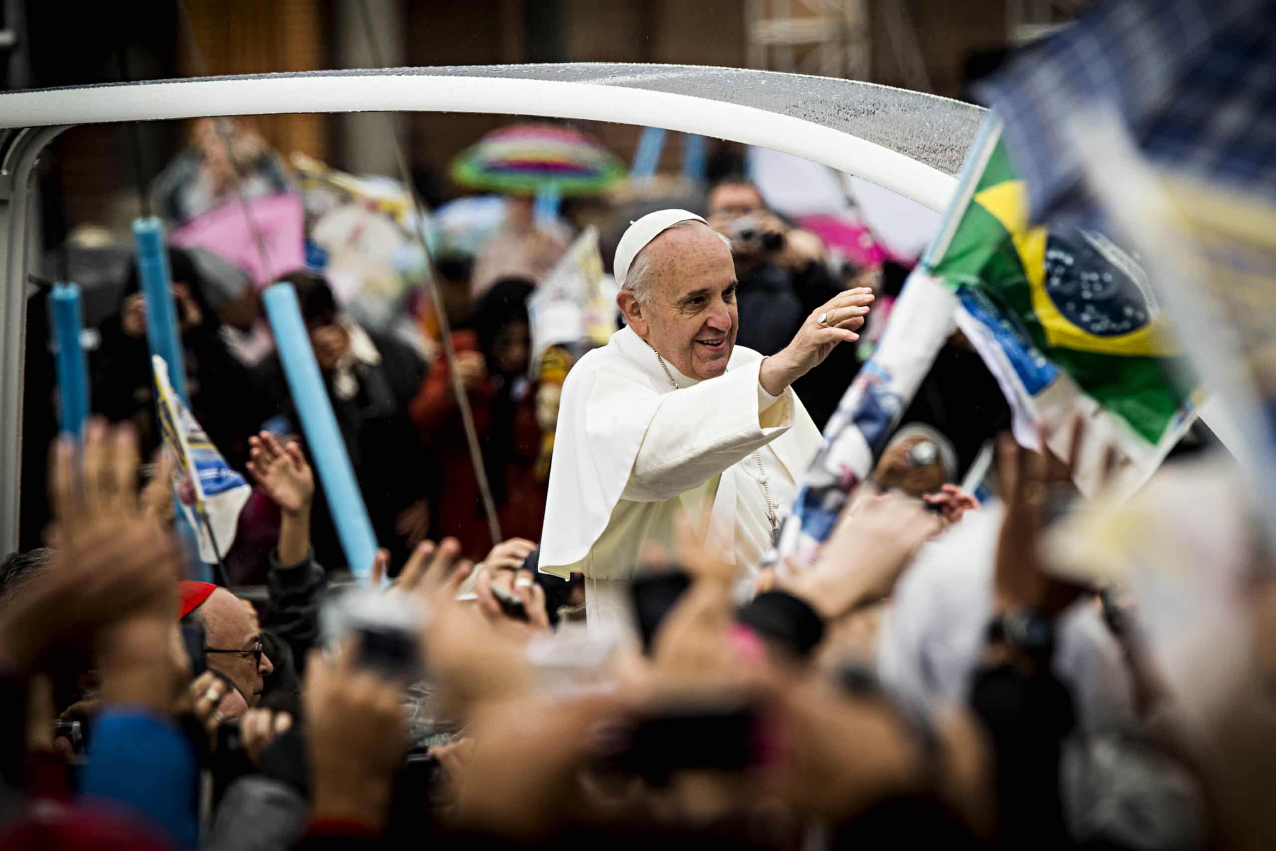 *ARQUIVO* APARECIDA, SP, 24.07.2013: Papa Francisco cumprimenta fieis ao entrar no pátio da Basílica de Aparecida (Foto Eduardo Knapp/Folhapress)