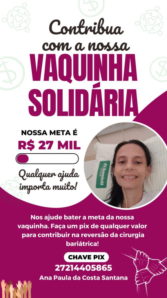 Ela então resolveu procurar outro médico fora de Rio Claro e em São José do Rio Preto encontrou um profissional especialista em bariátrica: “Ele me passou muita confiança e me deu muita esperança em resolver o meu caso. Disse que a solução seria a reversão da bariátrica. Ele já pegou outros casos como o meu. Acontece que essa cirurgia custa R$ 27 mil, meu plano de saúde disse que não irá cobrir isso e, como eu preciso dessa cirurgia para ontem, criei esta campanha. Não fui recorrer ao SUS porque não posso mais esperar. Eu estou pesando 36 quilos e fico mais tempo internada do que fora do hospital. Por isso peço a ajuda de quem puder colaborar com qualquer quantia para que eu consiga retomar a minha vida com saúde e alegria”.