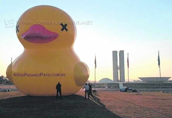 Pato gigante foi instalado em frente ao Congresso (foto ABr)