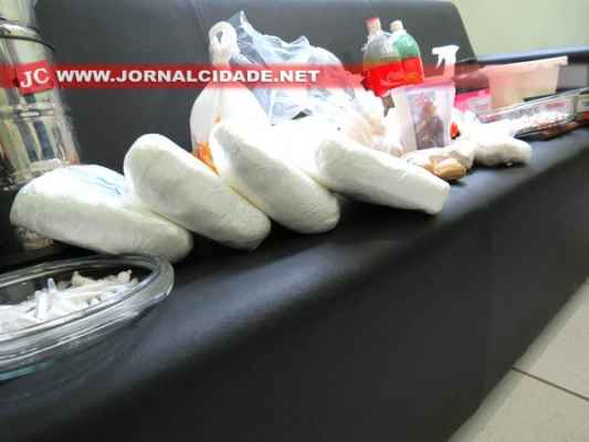 Foram apreendidas 350 pedras de crack, 70 eppendorfs de cocaína, 250 gramas de cocaína, 83 gramas de maconha e 7 kg de um pó branco ainda não examinado. Além da droga, foi encontrado equipamento e material para refino de cocaína.
