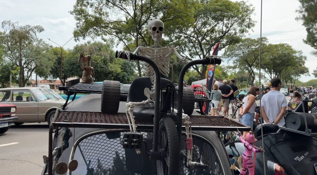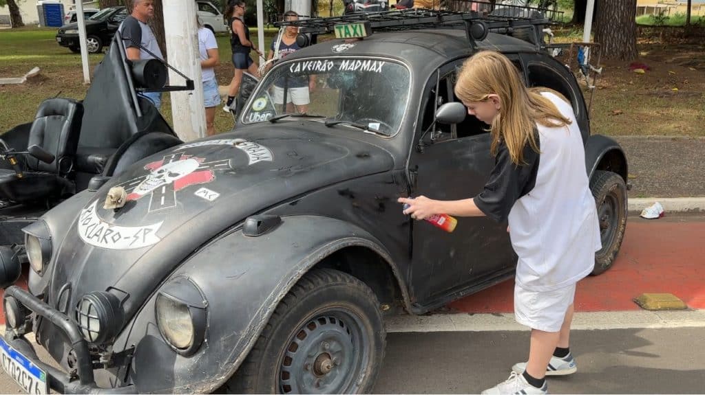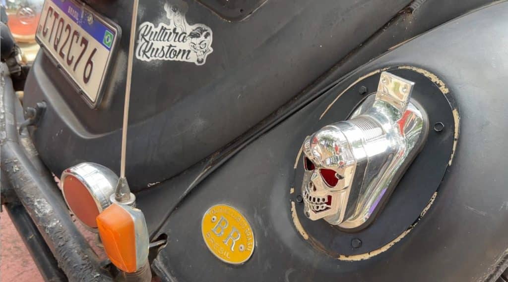 “Eu escolhi esse nome porque gosto desse estilo. Vivo entre motociclistas e também tenho motos customizadas, mas queria ter um carro e, como gostamos de caveiras e afins, decidimos deixá-lo assim. Cada Fusca tem a personalidade do seu dono, e este aqui é o meu Caveirão Mad Max”, explica.