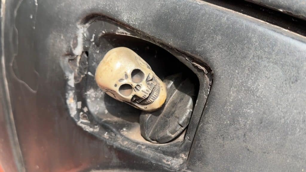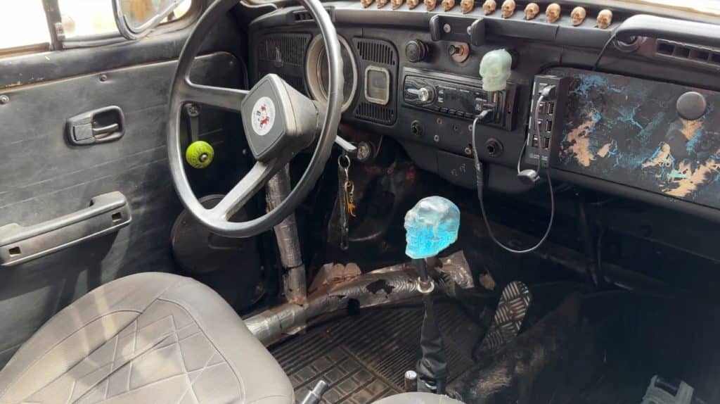 O veículo já estava parcialmente modificado, mas o jovem de 38 anos acrescentou alguns adereços bastante peculiares. Customizou o carro com caveiras em várias partes: no cabo de embreagem, no painel, no volante e no exterior, nas luzes traseiras, na tampa do tanque de combustível, no capô e especialmente no bagageiro, onde também instalou um E.T. semelhante ao do clássico filme dos anos 80. Uma escada foi colocada na lateral do carro para que as crianças possam subir no bagageiro e tirar fotos no ‘Caveirão’, como o Fusca é apelidado.