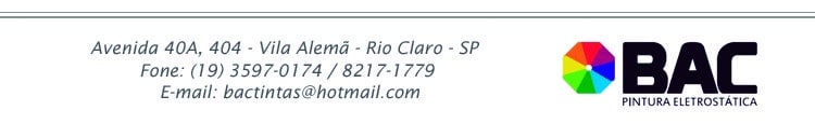 Benedito A. de Carvalho está à frente da empresa BAC Pinturas Eletrostáticas, que traz um serviço diferenciado para Rio Claro, de pinturas que possibilitam diversos acabamentos em produtos, de acordo com a tinta escolhida pelo cliente como, lisa, verniz, texturizada, craquelada, preto fosco etc.