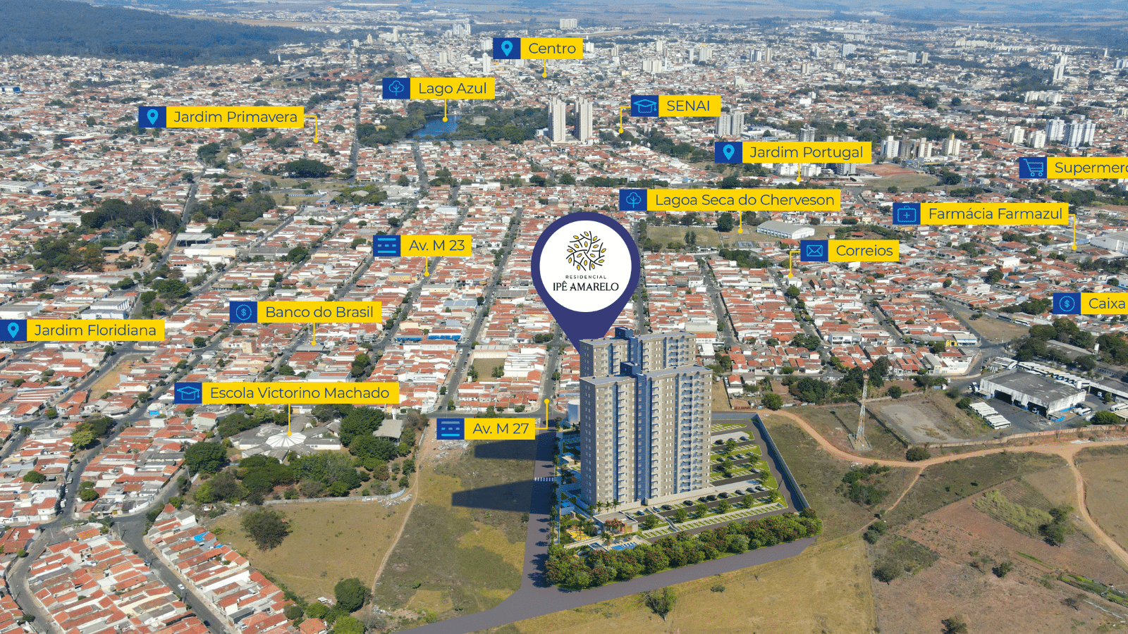 Residencial Ipê Amarelo está localizado no Cherveson, a apenas 5 minutos do centro, próximo à Praça Lagoa Seca. (Imagem ilustrativa)
