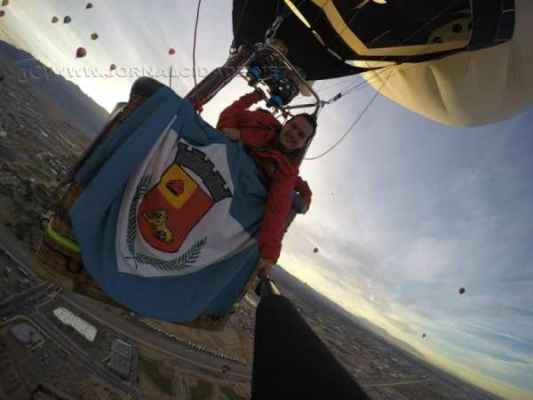 Como legenda da foto Rodrigo escreveu: “Aqui está nossa bandeira em céus americanos! É isso aí. E estamos muito bem falados por aqui devido a bela organização do Mundial de Balonismo. É isso aí Rio Claro!”.