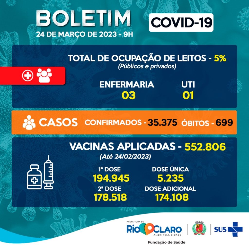 O boletim semanal divulgado nesta sexta-feira (24) pela Fundação de Saúde de Rio Claro registra o óbito de uma idosa, vítima de Covid. Nesta pandemia, o município chega a 699 mortes causadas pela doença.