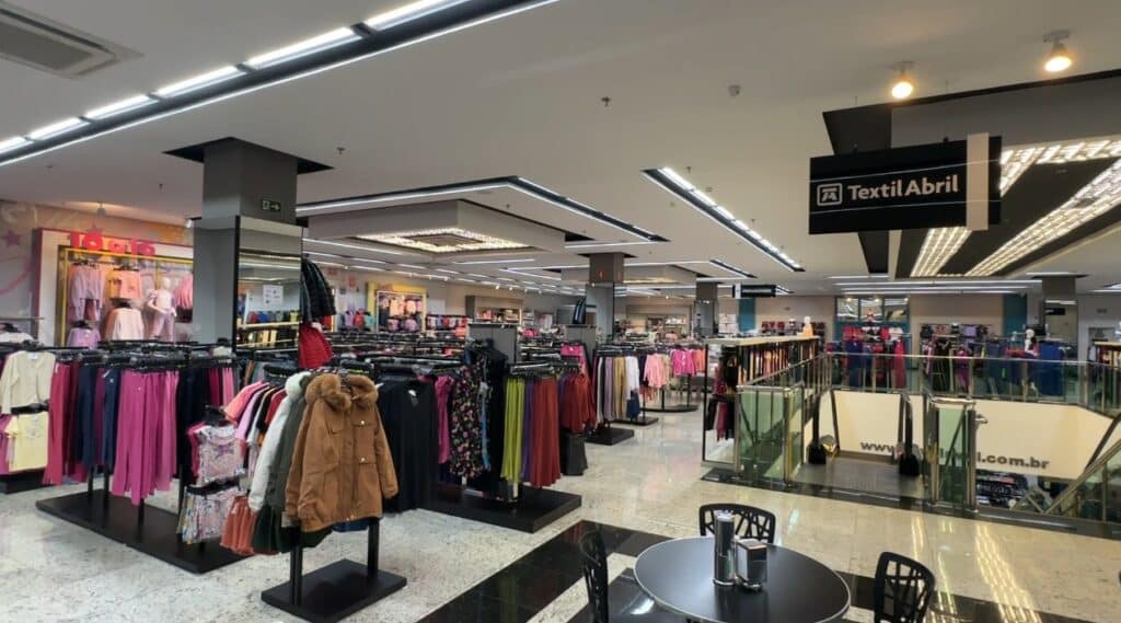 A loja conta com setores específicos, incluindo moda feminina, masculina e infantil, além de lingerie, moda praia e fitness. Os clientes podem encontrar peças que vão do básico à moda, com estilos variados como jeans, roupas íntimas e acessórios. A Têxtil Abril também se preocupa em atender a todos os públicos, oferecendo tamanhos que vão do P ao GG e incluindo opções Plus Size.