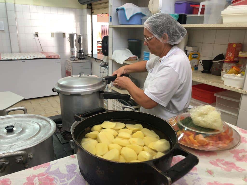 É na cozinha da Escola Municipal Djiliah Camargo de Souza, no Jardim Ipê, que a merendeira Rosimeire Ivete Rodrigues da Glória, 57 anos, mostra todo o seu dom com os temperos. De família humilde, a moradora do bairro Jardim Primavera conta que o sonho era fazer enfermagem, mas o curso da vida tinha outros propósitos para ela: “Mamãe não tinha condições, imagina 10 irmãos. Então estudávamos até a 8ª série e íamos trabalhar. Não conseguíamos prestar um concurso, fazer uma contabilidade. Aprendi a fazer unha, cabelo, artesanato, bolo e assim eu fui entendendo um pouquinho de tudo dentro das possibilidades. Meu grande sonho era ser enfermeira, trabalhar de branco, cuidar das pessoas, mas não foi possível. Porém, hoje trabalho de branco, dentro uma cozinha e posso dizer que cuido de uma parte essencial das crianças, que é a alimentação”.