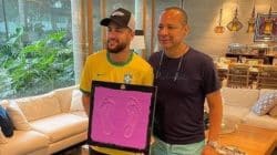 Neymar deixa marcas dos pés para exibição na Calçada da Fama no Maracanã