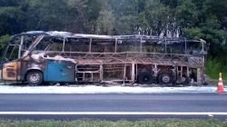 Ônibus pega fogo e fica destruído na Anhanguera em Araras