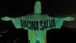 Cristo recebe iluminação para incentivar vacinação contra a covid-19
