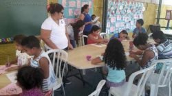 Crianças recebem alimentos doados pelo Fundo Social