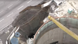 Obra do metrô cede, abre cratera e interdita parte da Marginal Tietê em SP