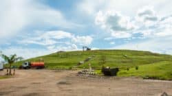 À frente, o que seria a nova árvore da liberdade. Ao fundo, o que restou do tronco da árvore original com mais de 130 anos de história