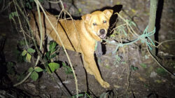 Cão da raça Chow Chow é encontrado amarrado em mata e sem água em Rio Claro
