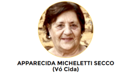 Apparecida Micheletti Secco, Vó Cida – 84 anos. Faleceu dia 22, às 10h00, em Rio Claro. Era viúva de Ismael Secco, deixou os filhos Marcos, Marcia c/c José Luiz, Magna, Ismael, Andreia c/c Danilo, 4 netos e 2 bisnetos. Seu sepultamento dar-se-á hoje, dia 23, às 13h45, seguindo o féretro do Velório Memorial Cidade Jardim para o Cemitério São João Batista;