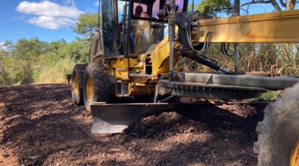 Trecho da Estrada do Castelano, na região do distrito de Ajapi, está recebendo serviços de manutenção realizados pela Secretaria Municipal de Agricultura de Rio Claro.