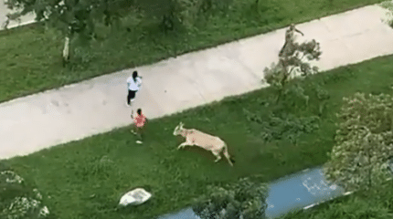 Um vídeo que circula nas redes sociais mostra o animal correndo pelo canteiro central da avenida e atingindo duas pessoas antes de ir em direção à via novamente. Nas imagens é possível ver também policiais, que foram acionados para resgatar o animal.