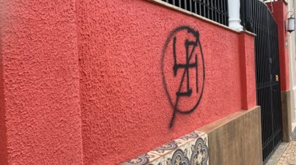 Câmera flagra pichação antinazista em restaurante no Centro de Rio Claro