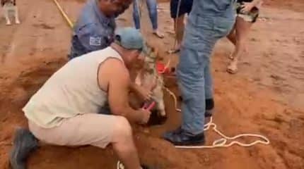 Bombeiros resgatam cachorro que caiu em buraco de obra em Rio Claro; Veja vídeo