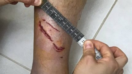 O movimento que resultou no ferimento indica o primeiro contato com a parte superior da mandíbula do animal e o movimento brusco de puxar no sentido oposto, provocando o levantamento da pele do membro atingido de dentro para fora.