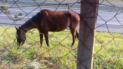 Uma égua morreu enforcada após uma tentativa de resgate na Rodovia Washington Luís, próximo ao bairro Estádio, em Rio Claro. Moradores haviam pedido ajuda do Canil Municipal para resgatar o animal, que andava pelas redondezas na última quarta-feira (10).