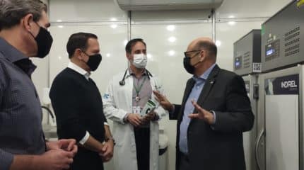 O Governador João Doria, o Secretário da Saúde, Jean Gorinchteyn, e o Presidente do Instituto Butantan, Dimas Covas, acompanharam nesta sexta-feira (9), em Ribeirão Preto, interior de São Paulo, o início dos ensaios clínicos da ButanVac, primeira vacina contra o coronavírus com produção integral no Brasil, sem necessidade de importação de matéria-prima. Os estudos inéditos são coordenados pelo médico da Faculdade de Medicina da USP de Ribeirão Preto, Rodrigo Calado.