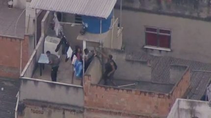Imagens de helicóptero da TV Globo que sobrevoava a região por volta das 7h da manhã mostraram policiais se protegendo atrás de postes próximos a uma linha de trem e, em outro momento, criminosos armados com fuzis fugindo por cima de casas da comunidade.