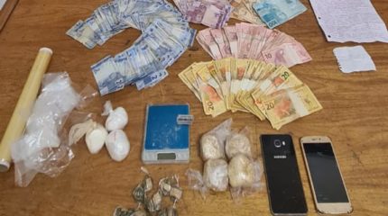 Após as buscas, foram localizadas diversas porções de maconha prontas para venda, porções de crack e cocaína ainda não fracionadas, além de balança de precisão, gilete para fracionar as drogas e material para embalo. Foram aprendidos ainda mais de R$ 5.000,00 em dinheiro trocado, oriundo do comércio ilegal, bem como dois celulares do investigado.