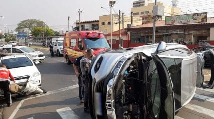 Um acidente de trânsito chamou a atenção de quem passou pela Avenida Visconde do Rio Claro, na altura da Av. 14, na tarde desta quarta-feira (7). Após colidir contra veículos estacionados, um Honda, modelo HRV, veio a capotar no cruzamento entre as duas vias.