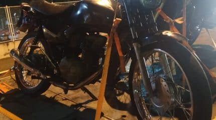 Em busca veicular os policiais constataram que a motocicleta ostentava um emplacamento que pertencia a outro veículo do município de Itapira-SP. Como os dados não condiziam com a motocicleta, foi verificado a numeração de chassi e motor, onde foi verificado que ambos estavam com a numeração suprimida. Foi constatado também a ausência de todas as etiquetas de identificação da motocicleta que se tratava originalmente de uma Titan verde. Diante dos fatos, o condutor e veículo foram encaminhados ao Plantão Policial para o registro da ocorrência, onde na sequência o adolescente foi liberado para sua genitora