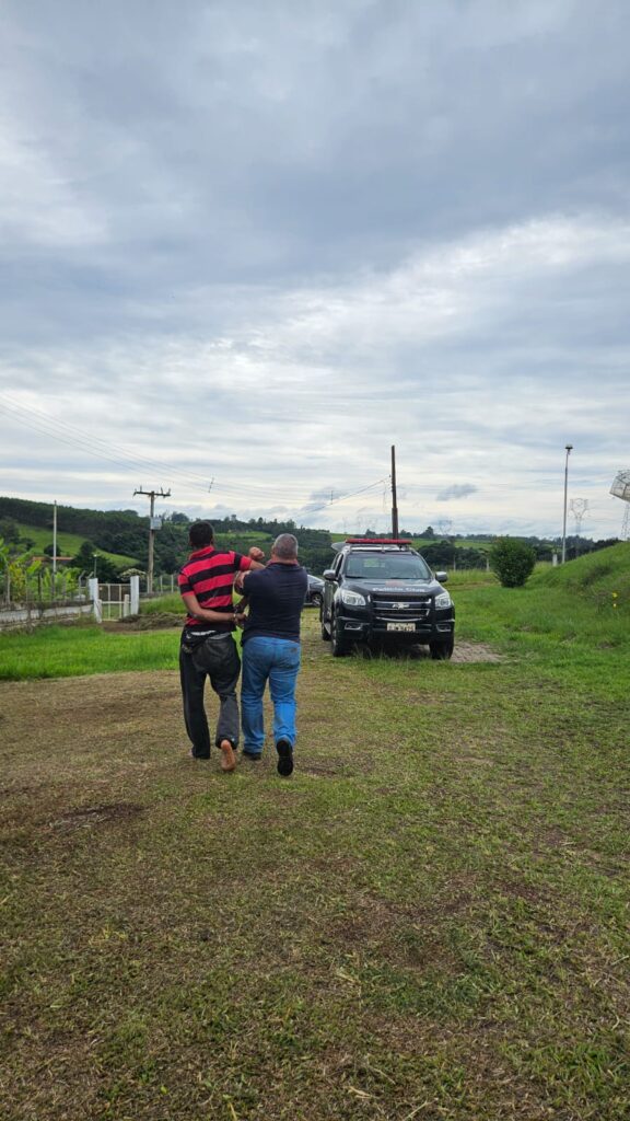 Momento da prisão do envolvido em Corumbataí. A esposa dela também foi detida