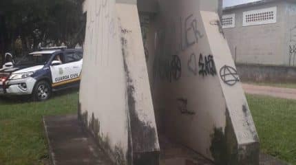 A menor estava pichando o monumento público conhecido como “monumento do leão”, localizado próximo à Avenida 32. Questionada, confessou que pichou também um estacionamento particular nas proximidades.