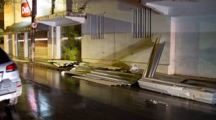 Segundo o relato do leitor, prédios próximos a onde as telhas caíram ficaram sem energia elétrica.