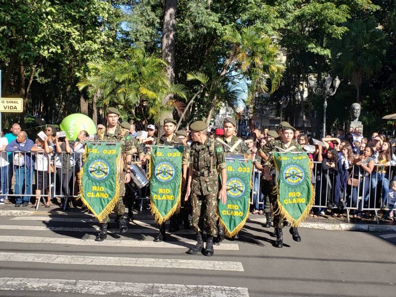 Um tradicional Desfile Cívico marcou o início do aniversário de Rio Claro nesta segunda-feira (24) no entorno do Jardim Público, com mais de 2.300 integrantes que, juntos, prestaram homenagens pelo aniversário da Cidade Azul.