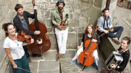Formado por músicos do Brasil e da França que se conheceram em 2015, o grupo já passou por mais de 20 países e lançou um disco, “Kombiphonie”, além de um primeiro EP chamado “Cao Laru”, lançado em 2016. No ano passado, a turnê deste álbum no Brasil rendeu no primeiro semestre 40 shows no Brasil e mais 50 na Argentina e no Chile, além de 60 apresentações na França e na Suíça no segundo semestre. O grupo é formado por Noubar Sarkissan (cavaquinho, violão, pandeiro e voz); Laura Aubry (acordeom e voz), Marie Tissier (violoncelo e voz), Cecilia Iovino (sapateado, dança e voz), Felipe Trez (bateria), Fábio Pádua (flauta, clarinete, violão e bandolim) e Pedro Destro (baixo elétrico).