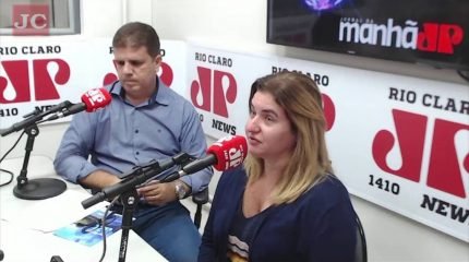A diretora Alaíde Barbosa e o gerente Alexandre Leite, da BRK Ambiental, falam explicam o sistema de coleta e tratamento de esgoto em Rio Claro. Empresa tem projetos para que cidade possa a chegar a 100% de esgoto tratado.