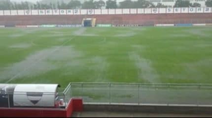 Com domínio da bola e a construção de jogadas, o Azulão levou perigo ao gol por várias vezes e por muito pouco não abriu o placar em São Paulo. Os times foram para o intervalo em 0 a 0, momento este em que uma forte chuva teve início. O campo se transformou em um verdadeiro piscinão e depois de 40 minutos de paralisação a arbitragem decidiu por adiar a partida que terá continuidade amanhã, quinta-feira (31) em horário que será confirmado pela Federação Paulista de Futebol.