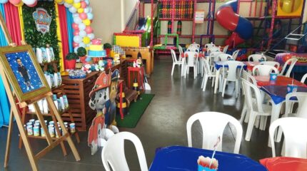 Na locação do salão está incluso: brinquedão com 3 andares (escorregador, cama elástica, piscina de bolinha), tombo legal, basquete eletrônico, mesa de pebolim, som, wi-fi e 15 jogos de mesas.