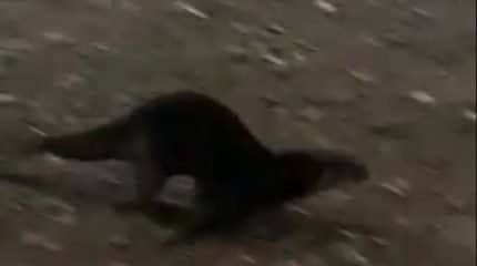 O animal saiu de baixo de uma banca de jornal no Lago Azul e surpreendeu as pessoas que passavam pelo local na tarde desta quarta-feira (8).