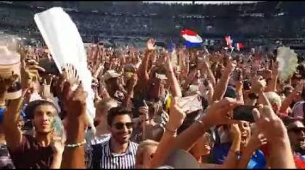 Casal de rio-clarenses, Fernanda Coli de Abreu e Lucas Talmelli de Abreu, envia vídeo do Stade de France, de onde assistem a final da Copa do Mundo entre França e Croácia.