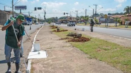 Além do Jardim Inocoop, outros bairros também receberam plantio de mudas nesta semana. A prefeitura realizou o plantio de 27 resedás nos canteiros centrais do Jardim Floridiana e 14 mudas de calistemo na rotatória da Avenida 50-A no Jardim América.