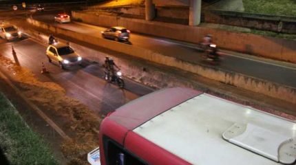 Ônibus sofre quebra e derrama óleo na Tancredo Neves