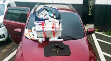 Com o acusado que estava no carro, um homem de 23 anos, foi apreendida uma arma e os medicamentos roubados da farmácia. O valor dos produtos levados pela quadrilha foi estimado em R$ 100 mil. Os outros criminosos não foram localizados.