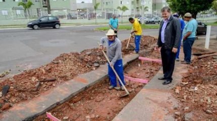 Outro serviço em execução é a construção de canaletas para escoamento de águas pluviais. “As canaletas vão facilitar o escoamento das águas até as galerias”, explica o secretário de Obras, Paulo Roberto de Lima. As melhorias vão beneficiar moradores do Jardim Paulista 1 e também de outros bairros da região que utilizam a avenida, como Maria Cristina, Benjamin de Castro e Sebastião dos Santos Lima.